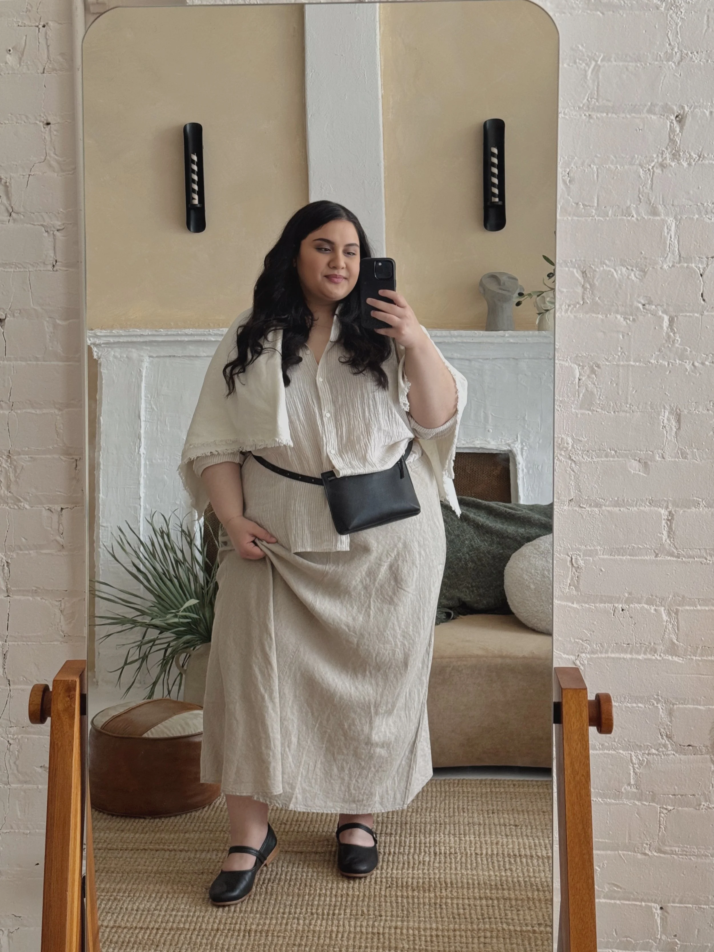 And as unglamorous as it sounds, I am also curious about Old Navy’s fall collection. I know fast fashion comes with many complex problems, and I am always the first to say that we should be thoughtful in how we buy. I am a firm believer in choosing two or three key pieces each season instead of leaning into haul culture, which I do think is the biggest problem on an individualistic level. The reality is that when so many brands stop at XXL, it is refreshing to see Old Navy still offering up to 4X in every single piece (let’s just get that full size range back in store, please!). I do appreciate them for that. One of their linen tops was my go-to all summer, worn on repeat, so I am hopeful they will bring that same ease and accessibility into their fall lineup. I’d love to see some fun pleated skirts from them for fall. Pleated items usually have to be made with a synthetic fibre (or a blend). So, if I am going to purchase something synthetic from a fast fashion brand, I would like it to have some kind of reason or purpose (if that makes sense).